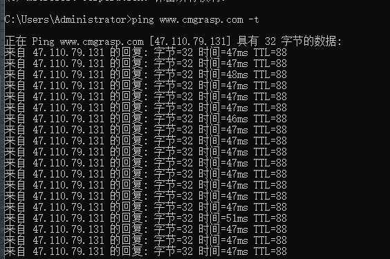 如果要连续ping(也叫长ping),则ping ip -t