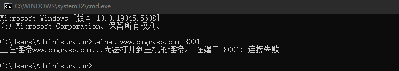 录入命令回车后,如果显示连接失败,那就表示端口不通;