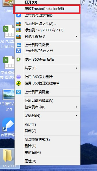 2、选择数据库安装包所在的文件夹和C:\Windows\目录下的SysWOW64点右键获取TrustedInstaller权限