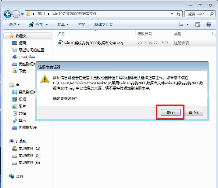 1、运行win10系统安装2000数据库的注册表文件,文件下载地址