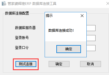 3、输入后先点击【测试连接】,等测试连接提示链接成功后,再点击确定即可。
