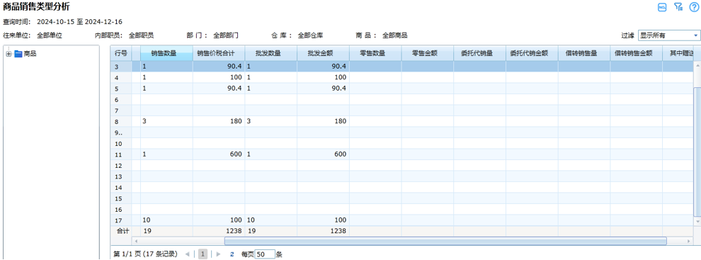 报表位置:数据查询——销售查询——商品销售类型分析