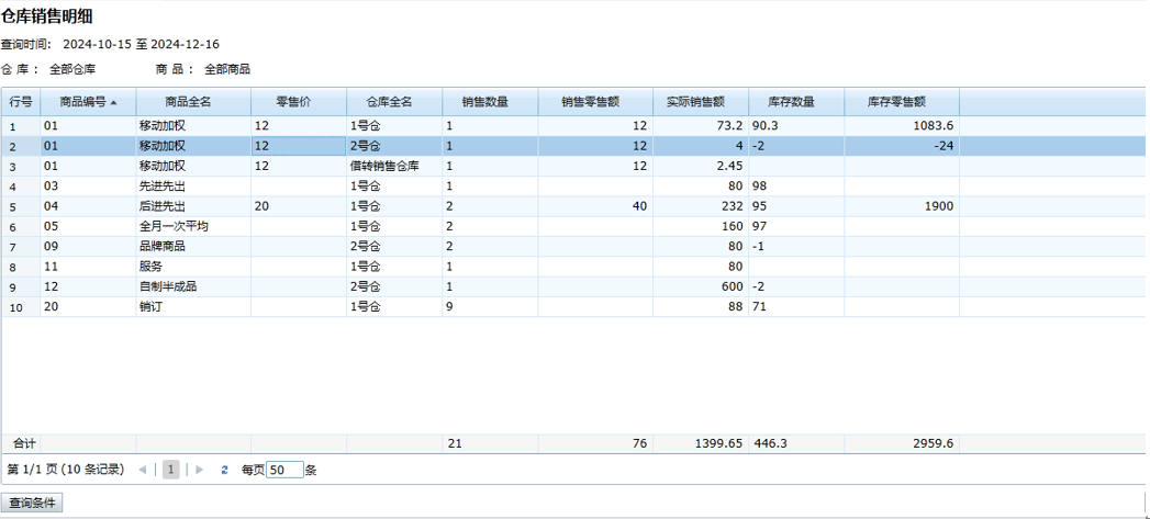 一、仓库销售明细简介