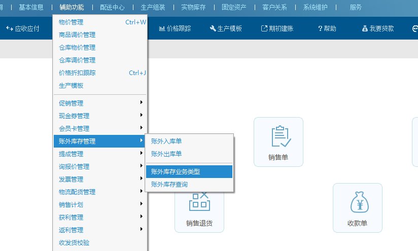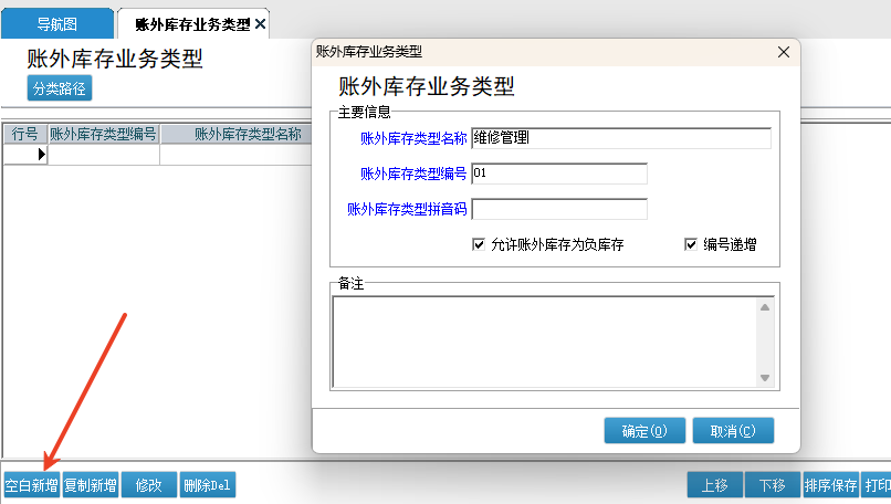 1、在辅助功能---账外库存管理---账外库存业务类型中新增类型,一般都是以维修业务为主,以售后免费维修Iphone 7S手机为例,接下来我们简单的说明一下;