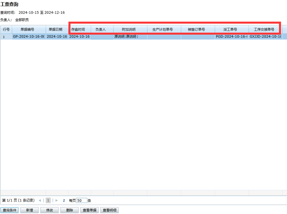 生产计划单号:生成工票的工序交接单调用的派工单,这个派工单关联的生产计划单单号