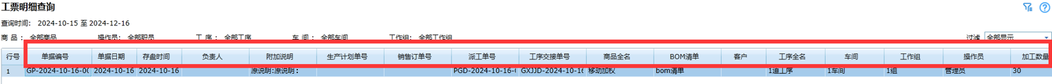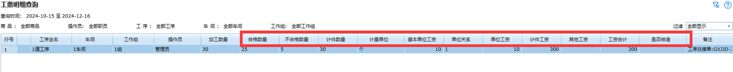 工票明细查询,可查看查询条件范围内各工票的明细情况