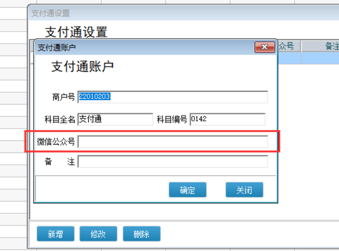 3、软件13.2及以上的版本,支付通设置里还增加了微信公众号功能;支付结算完成弹出是否关注本公司公众号功能。用户可选择是否关注。此字段非必填项。如程序对接了微信公众号,可在此字段中录入公众号ID。如支付通设置中配置了微信公众号ID,客户在微信支付后,微信支付界面有“是否关注”选项,默认为勾选,勾选后即用户自动关注公众号。