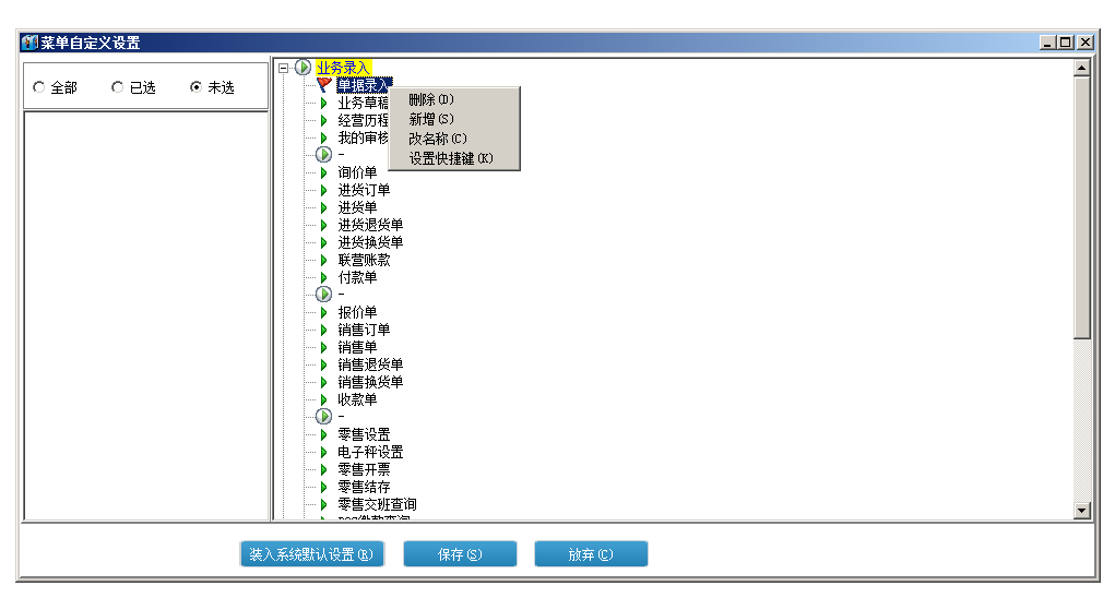 可新增、删除、修改菜单名称、修改菜单快捷键