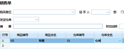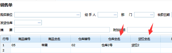 2、单据的应用:当我们在单据上选择这个商品之后,则会在单据表体自动带出设置好的默认仓库以及默认货位(出入库单选择该商品据均会带出默认的仓库以及货位。)