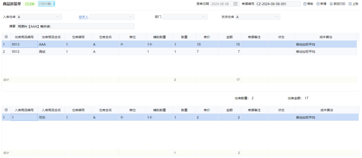 2、商品拆装单上入库商品成本算法为先进先出和手工指定法 的商品不支持分摊费用,无法调用到,入库商品的成本算法为移动加权和移动加权启用批次支持分摊费用,可以被商品拆装费用分配单调用到。