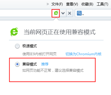 (3)如果浏览器是用的360、搜狗、QQ等浏览器,可以点击这个位置,切换为兼容模式