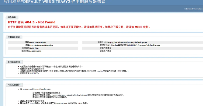 2、点击“Internet信息服务(IIS)管理根目录”(如图1-2中的“GP-PC”)-“网站”-“Default Web Site”-虚拟目录(如图1-2的MY24)-找到“处理程序映射”双击。
