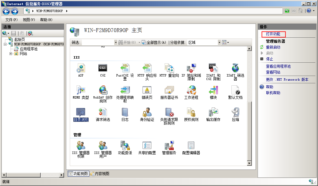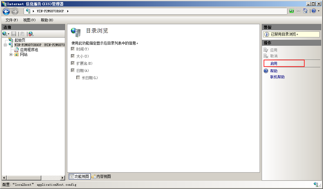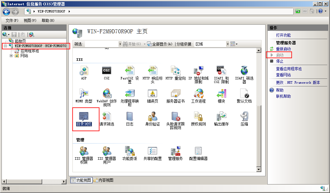 在‘功能’视图中,点击 “目录浏览”,启动。