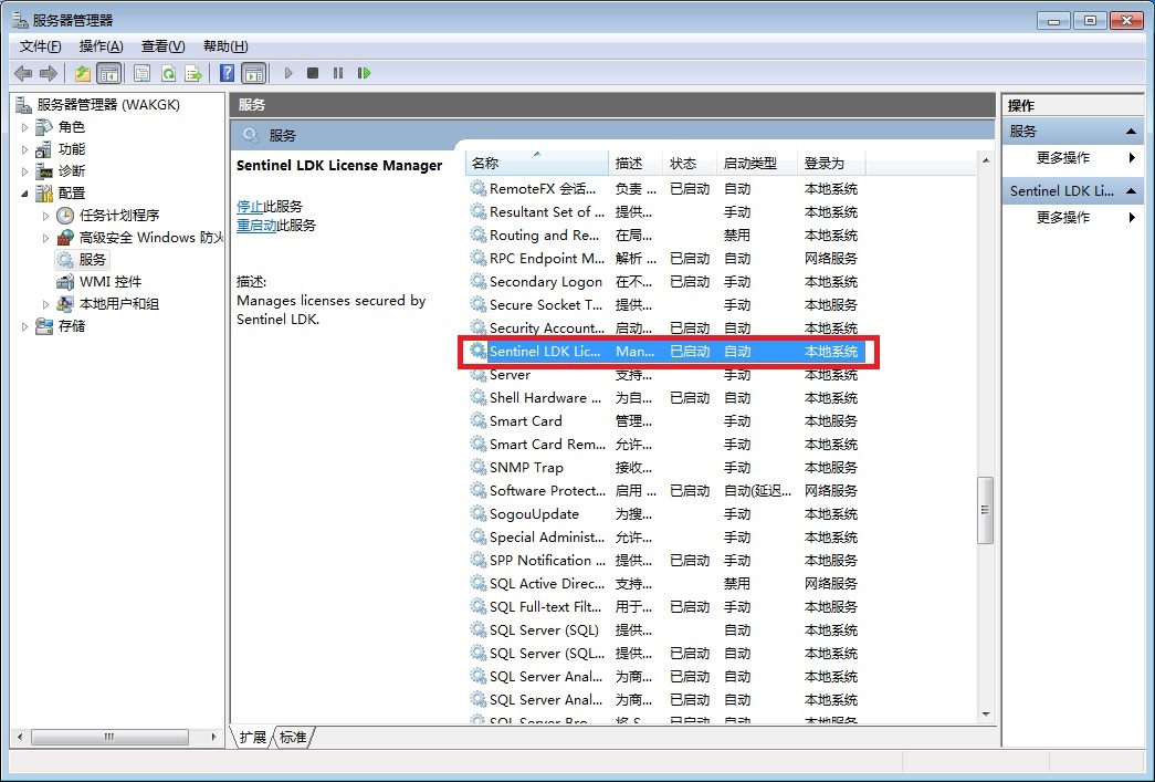 (3)、点击我的电脑(计算机)——右键——管理——点击左边的【服务和应用程序】——服务——找到sentinel开头的服务——看这个服务是否是启动的状态呢?  如果是,右键单击这个服务——停止,并右键—属性—将其设置禁用;禁用后再登陆程序