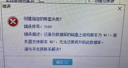 情况二:15.X版本对接了SQL2008数据库(非SQL2008R2数据库)时创建账套也会报错。