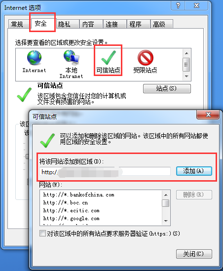 2、点击IE浏览器上面选项卡的【工具】打开【Internet选项】,添加可信任站点,把管家婆软件的访问地址复制进去;