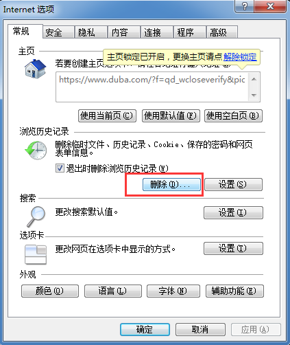 4、点击IE浏览器上面选项卡的【工具】打开【Internet选项】清理IE,点击删除;