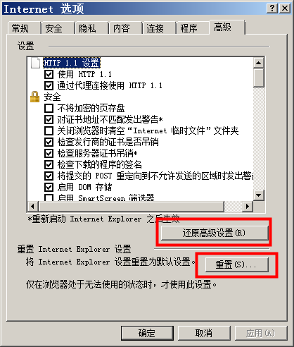 打开IE浏览器-工具-Internet选项-高级-【重置】,以及【还原高级设置】