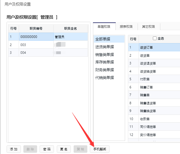 云辉煌手机版是跟手机绑定的,如果更换手机登录,需要在云辉煌后台【PC端】登录管理员,打开系统维护下系统管理中的用户及权限配置,选择对应的操作员点击【手机解绑】,随后再重新登录。