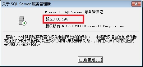3、数据库没有打补丁,在电脑右下角找到sql数据库的图标点右键——关于,看看版本,如果版本是8.00.194就表示是没有打补丁的,需要下载一个SP4的补丁打上,打了补丁后的版本显示的是8.00.2039
