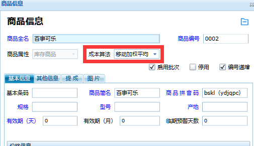 (2)修改已过账单据功能不能修改非移动加权平均算法的商品。
