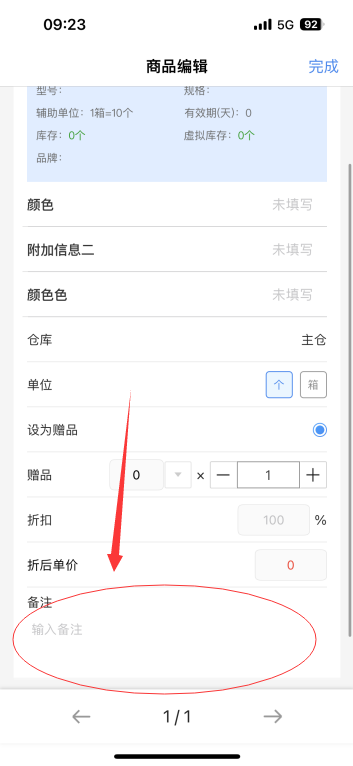 在开单时选中商品之后,点进对应的商品,在商品编辑界面录入备注即可。