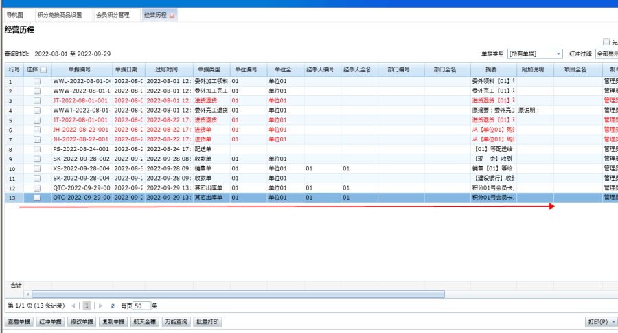 5、点击确定后会提示兑换成功,成功后,经营历程会自动生成其它出库单,直接出库,相当于赠品。