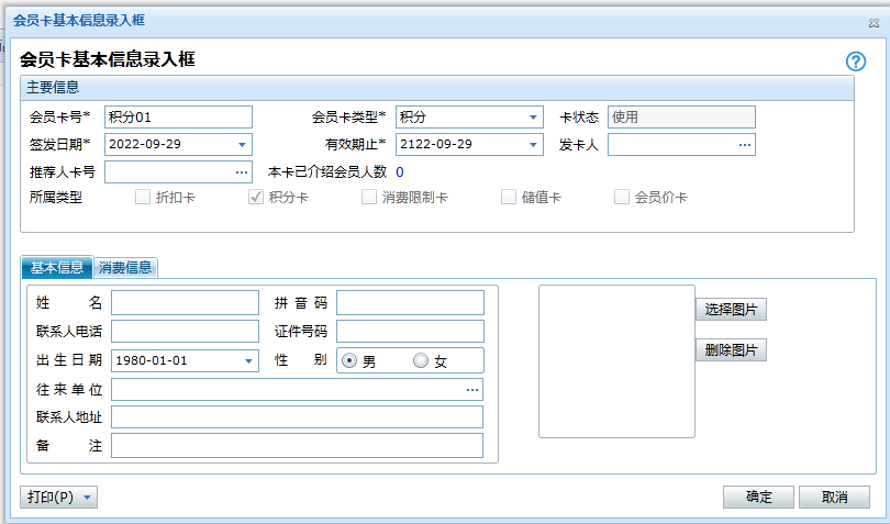 2、设置好积分卡后,再到会员卡管理——会员卡发卡,选择积分卡发卡: