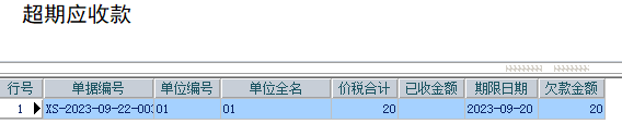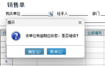 启用提示后,比如今天是9月22号,但是这个往来单位下,还有收款日期在9月22号之前且没有结算的单据(具体有哪些单据,可以在数据查询---往来查询—超期应收款 报表里面查到),那么开单据选择这个单位的时候,就会提示,如图