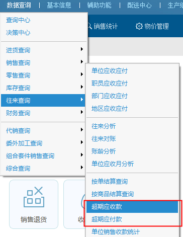 注意:超期应收款目前不支持按金额结算方式,需要在系统维护---用户配置---系统管理,设置为按单结算或者按商品结算。