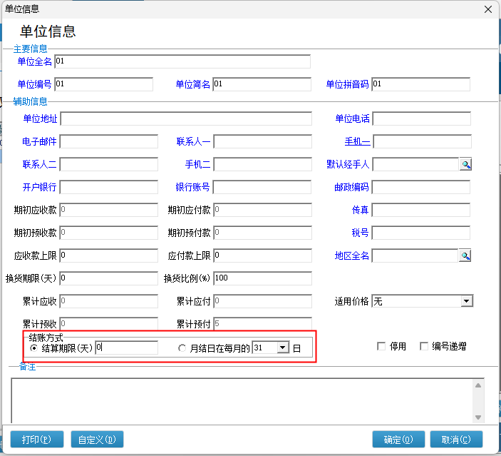 如果结账方式设置为【月结日在每月的XX日】,比如设置为月结日在每月的30日,做单据时选择这个单位,收款日期/付款日期就会变为这个月的30日