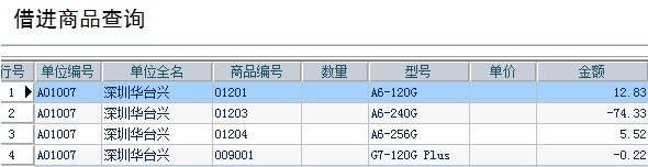 2.对这个商品,同一单位,借进一个数量 ,然后看借进商品查询这个商品的金额是多少