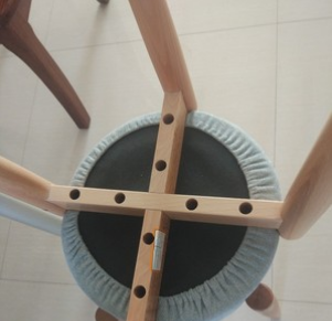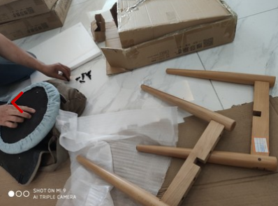 圆凳,该圆凳由4个蹬腿、两个支架、一个海绵凳面组成,在批发时为便于运输,将两个蹬腿和支架组装好,如图2,发货时发两个蹬腿和支架的组成品、一个套了布罩的坐垫发给客户,再由客户自行简单组装