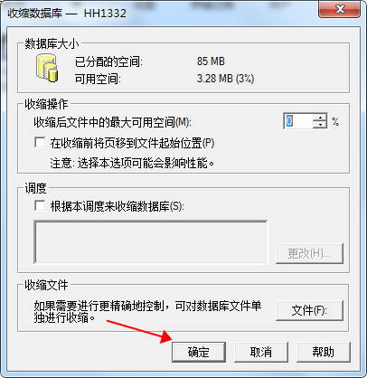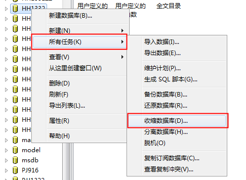 3、右击数据库——任务——收缩 ——收缩数据库——确定