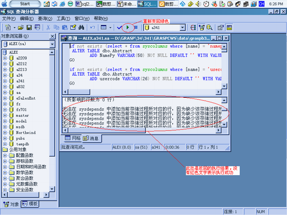 执行完毕后,绿色小箭头将重新出现,而且会返回很执行结果。注:只要所返回的结果中没有红色的文字,则表示升级已成功。