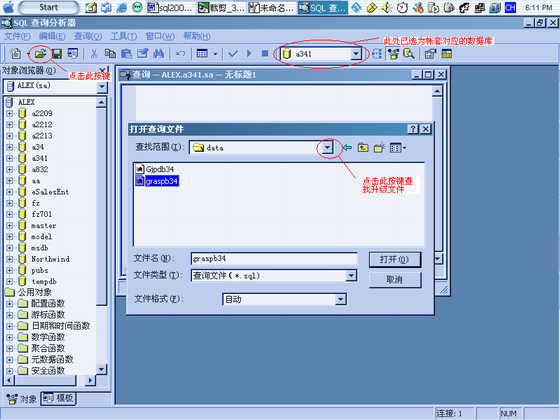 点击打开按键,选择用于账套升级的sql脚本文件,找到后点击打开。(在您的管家婆安装路径的data下面,有2个文件GRASPHH366JJ700239db.sql和GRASPHH366JJ700239.sql,注意:先执行前面带db的文件。切记)