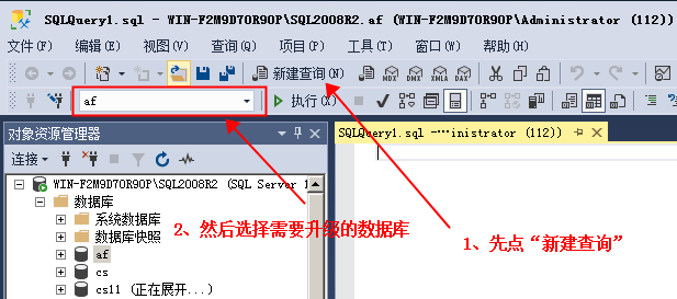 3.新建查询-在如下方框中选择想要升级的账套对应的数据库