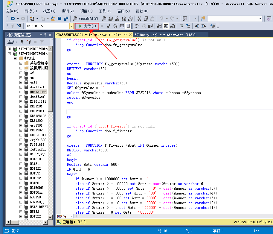 3、将需要执行的脚本拖入或者粘贴进来,然后点执行按钮,等待执行完成即可。
