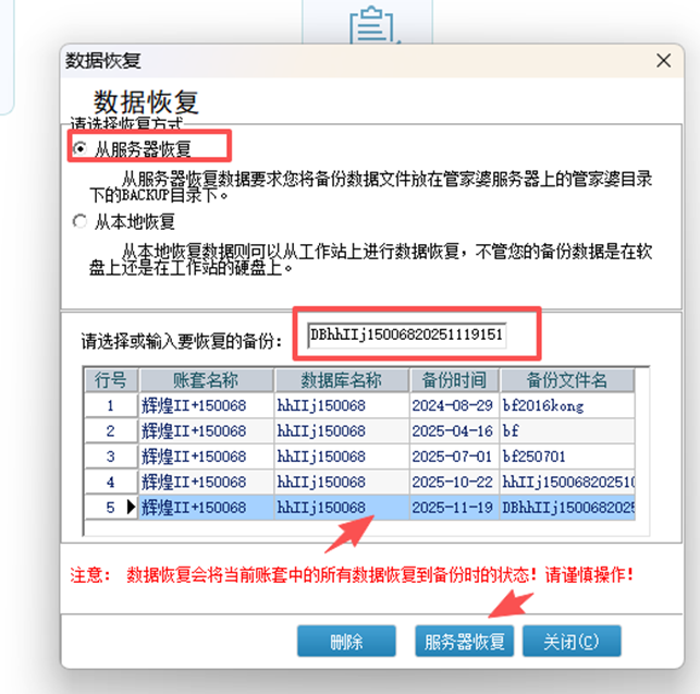 线下版本,之前有手动备份或年结存提示备份时点了确定,备份了的,会显示在服务器安装目录下backup文件夹里,可以直接系统维护——数据备份,选择对应年结存的备份双击,然后再点恢复,恢复后会覆盖现在的数据,操作前也做好数据备份。