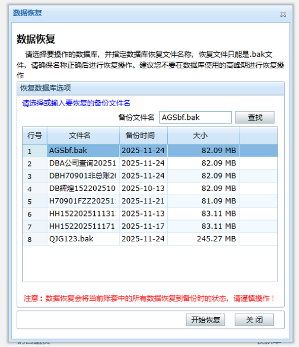 2、进入刚刚创建的新账套,进入系统维护系统设置--数据恢复--服务器恢复,选择步骤1备份的数据,双击确定,恢复之前步骤a备份出来的数据备份。