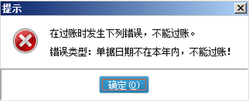 上述版本软件的总账版最后个会计必须年结存。如果没有做年结存,单据录单时间超过最后一个会计期间范围去过账单据会有这个报错提示。