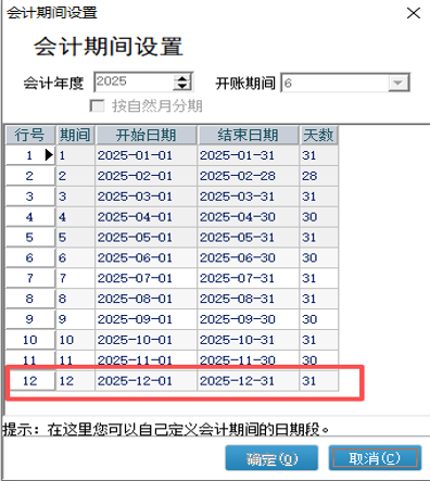 最后一个会计期间范围请在总账管理——基本信息——会计期间确认