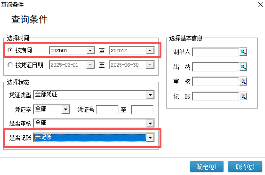 2、请确认总账管理——凭证处理(CS)/凭证查询(erp)——凭证查询(CS),【本年会计期间内】查询条件【是否已记账】:未记账,是否还有未记账会计凭证,凭证未记账,资产负债表、利润表和现金流量表将不会记录对应凭证数据,衍生出报表对账数据不等问题;